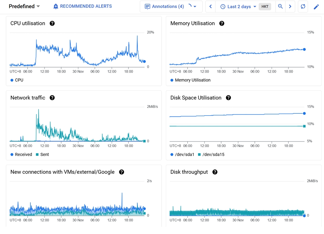 We struggled with setting up a proper monitoring system and only had the limited monitoring from GKE shown above.
